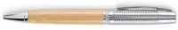 Csavarzáras fém golyóstoll bambusz markolattal, hengeres, alumínium fedelű bambusz ajándékdobozban. Kéken író betéttel.