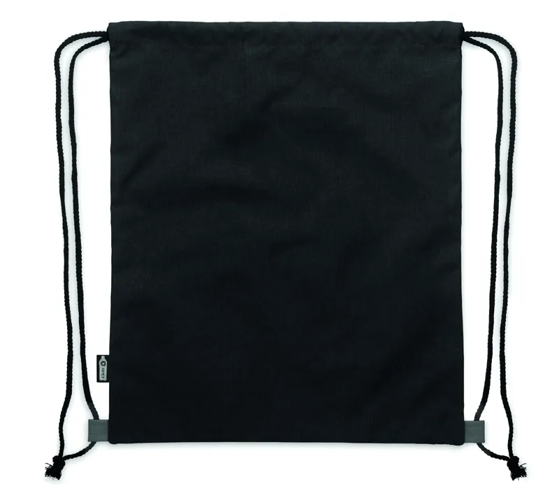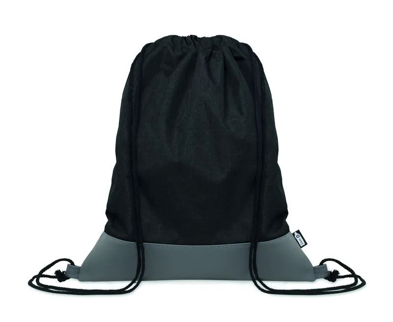 Húzózsinóros táska melírozott színű 300D RPET poliészterből, puha PU részletekkel és poliészter-pamut kevert szálas zsinórral.