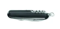 Többfunkciós zsebkés újrahasznosított alumíniumból. 5 funkció: nagy penge, üvegnyitó, csavarhúzó, dugóhúzó és konzervnyitó.