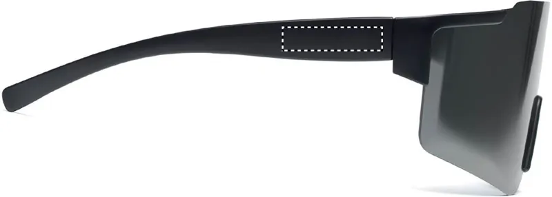 Sport napszemüveg tükrös lencsékkel és fekete kerettel. UV400 védelem.