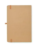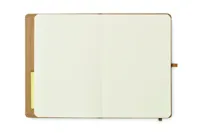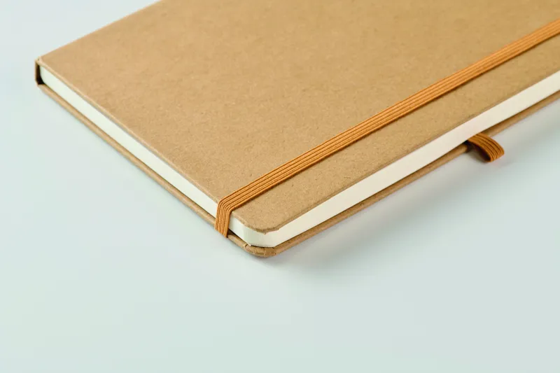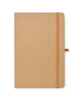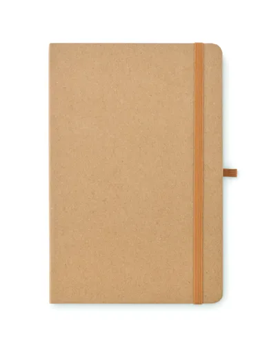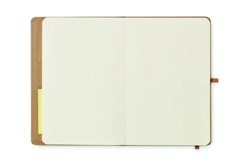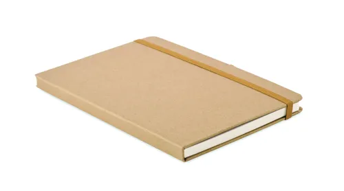 A5 jegyzetfüzet karton borítóval, 160 sima oldal (80 lap) újrahasznosított papírból, 25 lapos öntapadós jegyzetelő és 25 oldaljelölő. Elasztikus zárópánt és tolltartó hurok.