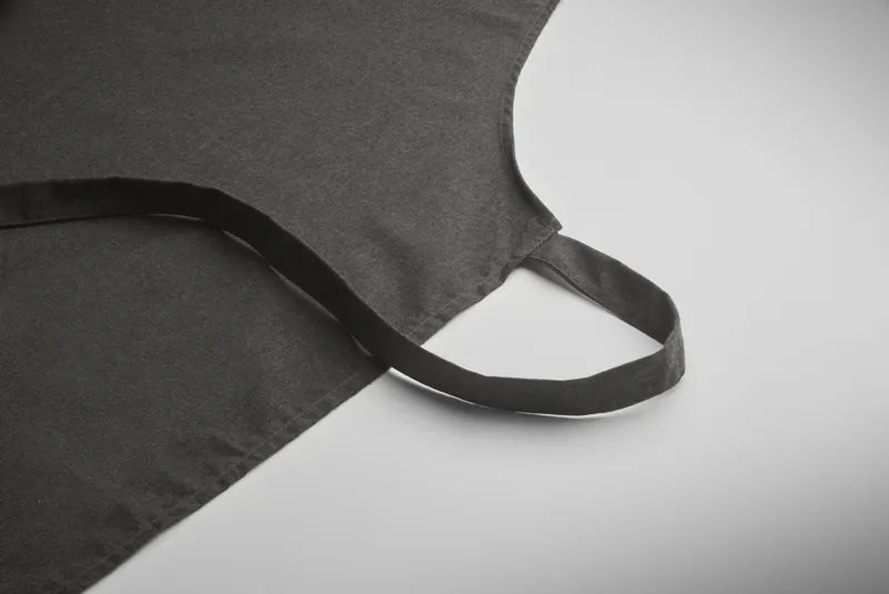 Fogyasztás előtti újrahasznosított pamut kötény, 180 g/m² (70% újrahasznosított pamut és 30% RPET poliészter). Ez az anyag nyomtatás után zsugorodhat.