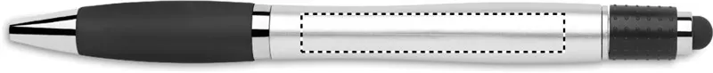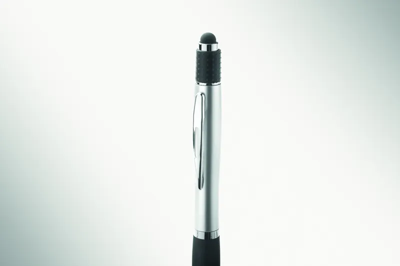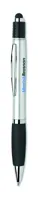 Érintőhegyes, csavarzáras, stresszoldó pörgettyűs golyóstoll újrahasznosított ABS-ből. Kéken író betéttel.