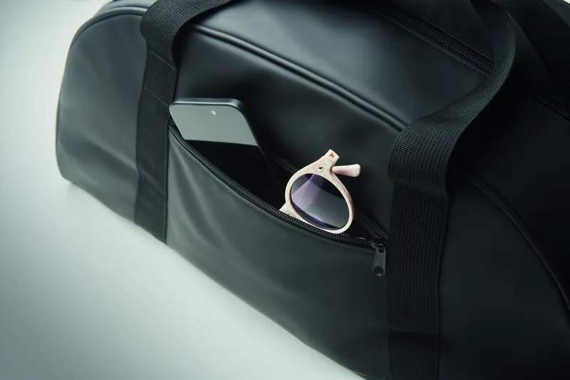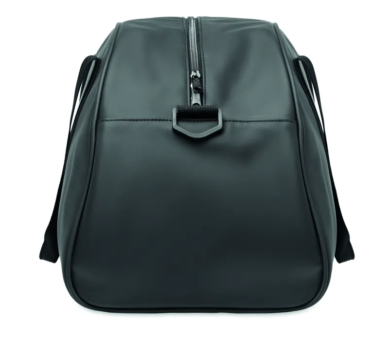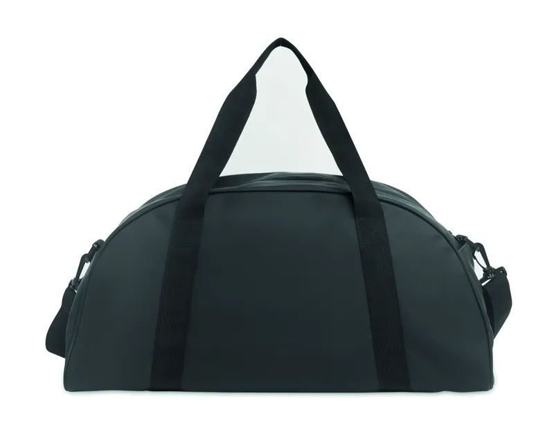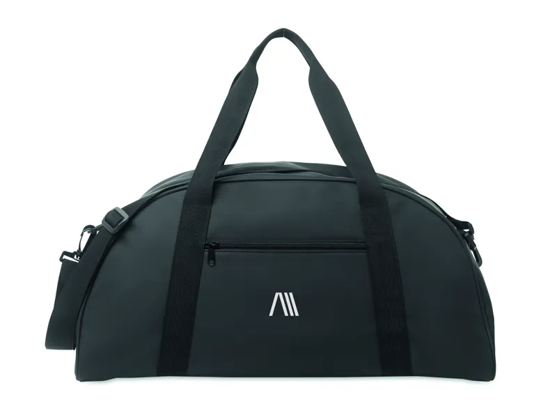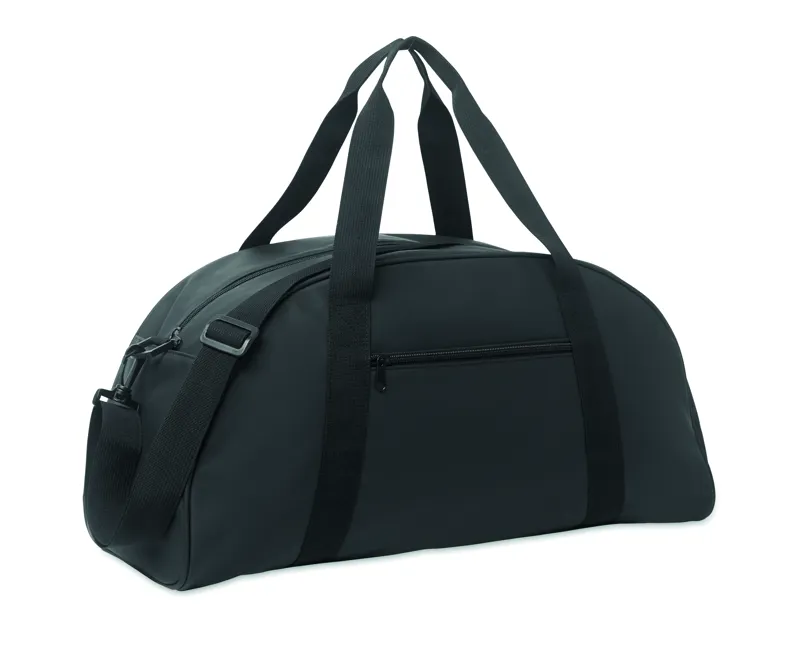 Sport- vagy utazótáska puha PU anyagból, alsó habszivacs megerősítéssel. Egy fő rekesz, cipzáras elülső zseb és cipzáras belső zseb. 210D RPET poliészter bélés. 2 hordfül, állítható és levehető vállpánt.