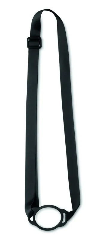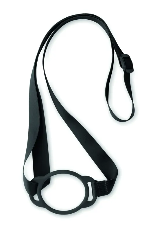 Nyakpánt szilikonból készült fesztivál- vagy rendezvénypohár tartóval (Ø 6 cm) és PP állítható csattal. 20 mm széles nyakpánt.