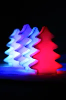 Karácsonyfa alakú PVC hangulatvilágítás váltakozó LED fénnyel: fehér, kék, lila, piros, sárga és zöld. A 3 LR44 elemmel szállítjuk.