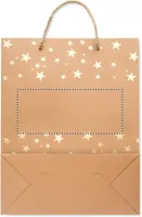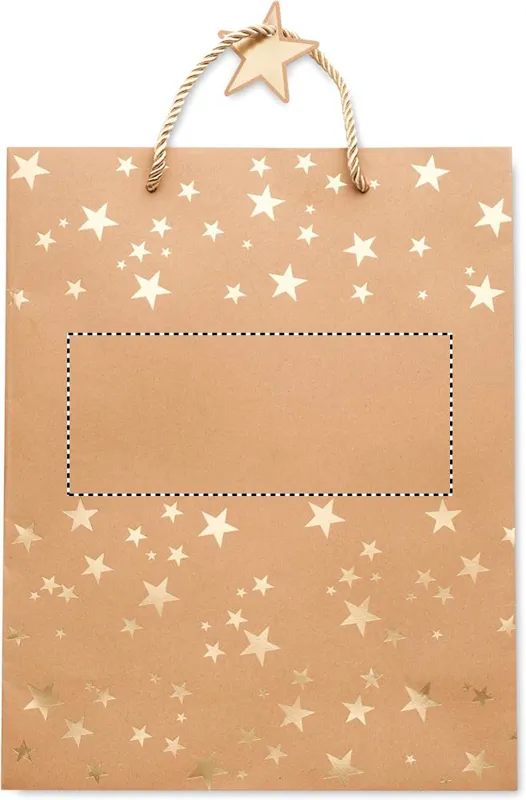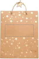Elegáns kraftpapír ajándéktasak ünnepi mintával. Ajándékkísérő címkével. 250 g vastag papír. Ez a stílusos és ünnepi motívummal díszített papírtasak tökéletes csomagolás egy különleges személynek szánt, átgondolt ajándék számára. Egy tetszetősen becsomagolt ajándékot átadni már fél siker! FSC®-certified | FSC RECYCLED, P5.3, FSC-C213206