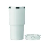 Duplafalú pohár újrahasznosított rozsdamentes acélból (90% újrahasznosított rozsdamentes acél és 10% rozsdamentes acél). Fedél csúsztatható ivónyílással. Szivárgásmentes. Űrtartalom: 500 ml.
