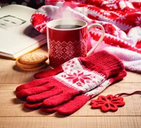 Téli ajándékkészlet, amely egy pár kapacitív, hópehely mintás kötött kesztyűt és egy kerámia bögrét tartalmaz. Űrtartalom: 300 ml. Hozzáillő ajándékdobozban.