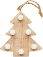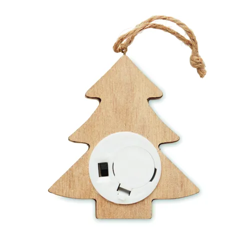 Fából készült fenyő alakú karácsonyfadísz 6 LED-es fénnyel, akasztózsinórral. A működéshez szükséges 1 db CR2032 elemmel szállítjuk. A fa természetes anyag, termékenként szín- és méretbeli eltérések jelentkezhetnek, ami befolyásolhatja a dekoráció végső eredményét.