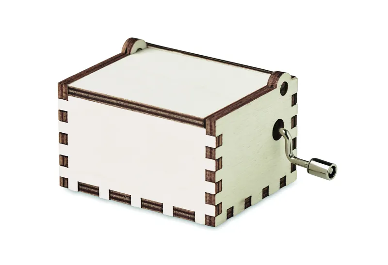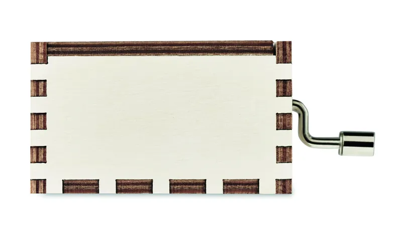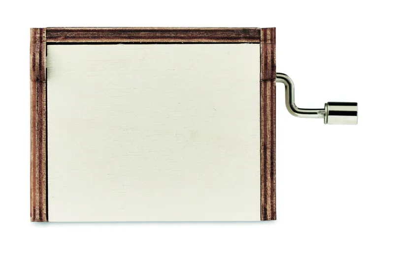 Fából készült karácsonyi kézi tekerős zenedoboz. 'We Wish You a Merry Christmas' dallamot játszik le. Működtetéséhez nincs szükség elemre.