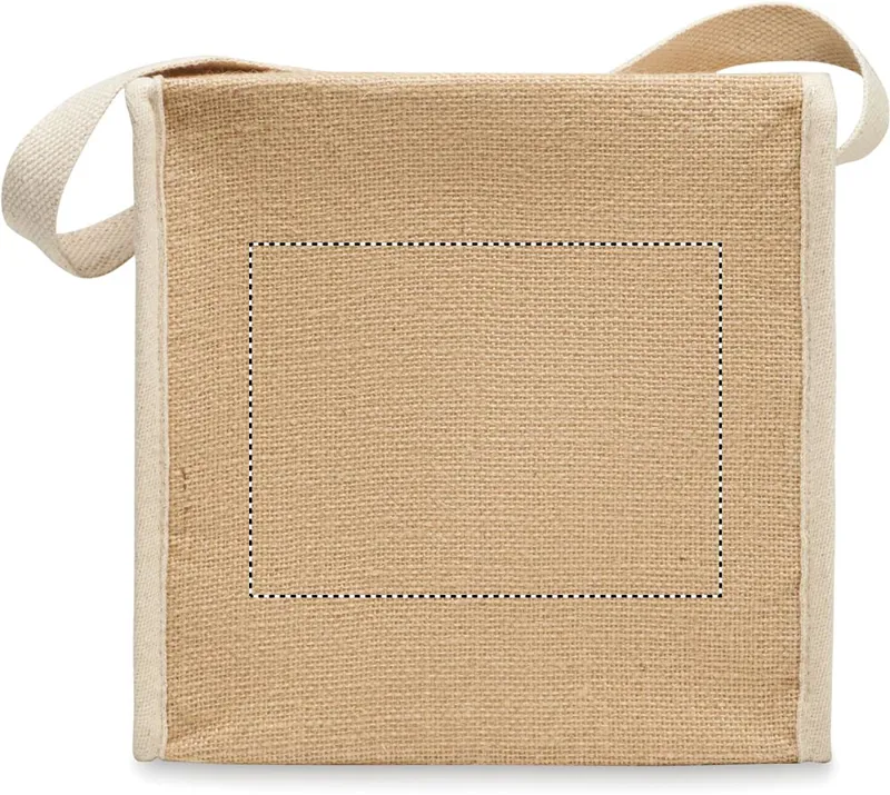 Juta hűtőtáska pamut füllel és elülső zsebbel 6 db 0,5 literes palack számára. Szigetelés: 3 mm vastag alumínium fólia. Kapacitás: 3 l.