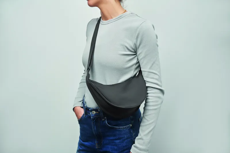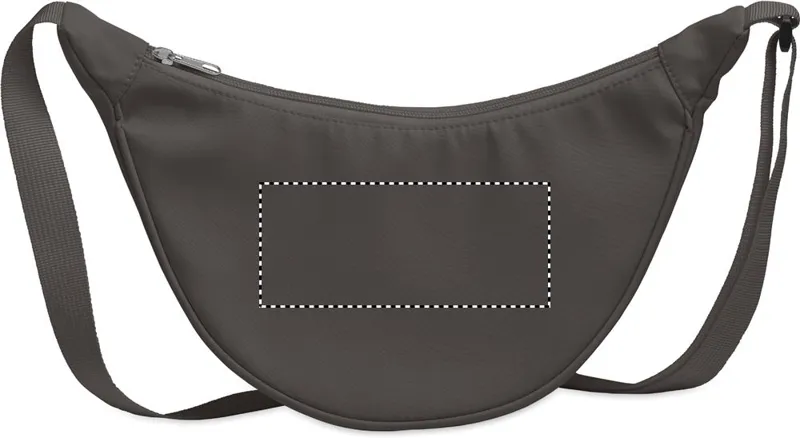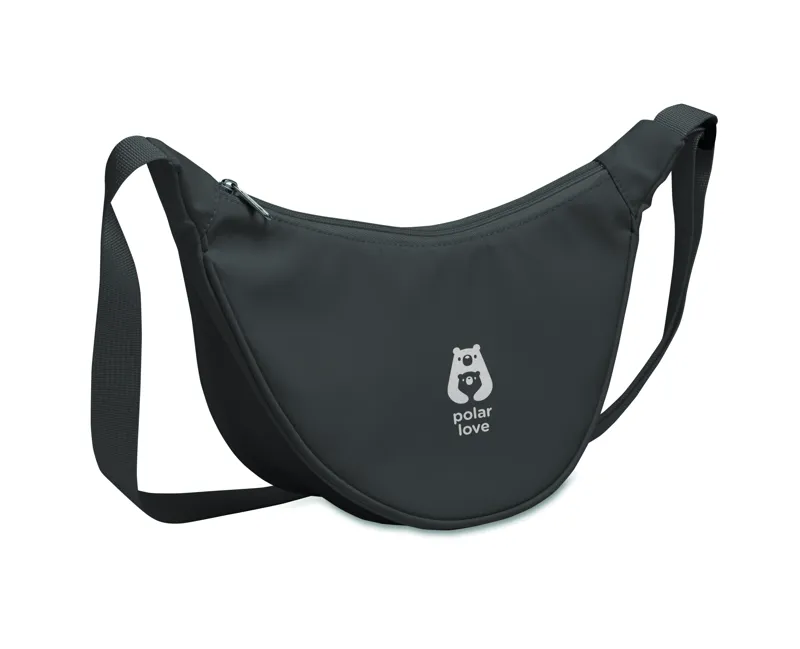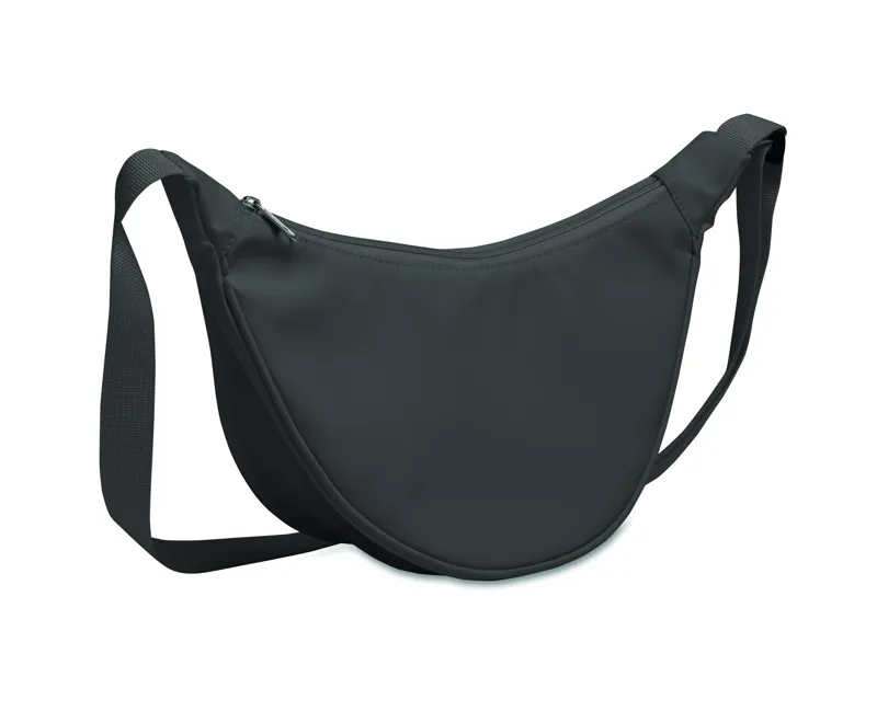 Keresztpántos, félhold alakú táska 400D oxford anyagból, 210D RPET béléssel. Egy cipzáras fő rekesz, 2 belső zseb.