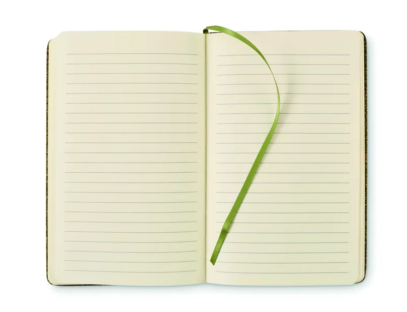 A5 jegyzetfüzet keménytáblás borítóval, 20% teazaccból, 30% parafából és 50% poliészter-pamut anyagból. Cérnafűzött. 160 vonalas oldal (80 lap), 70 g/m² újrahasznosított papírból. Illeszkedő színű elasztikus zárópánt és könyvjelző szalag. FSC®-certified | FSC MIX CREDIT, N7.1, FSC-C213206