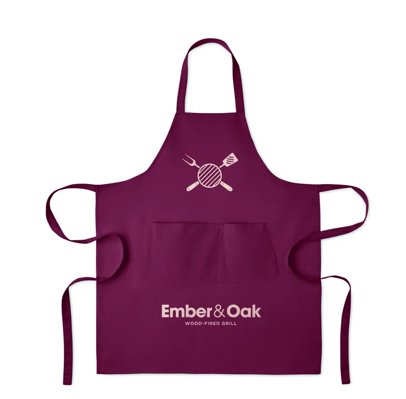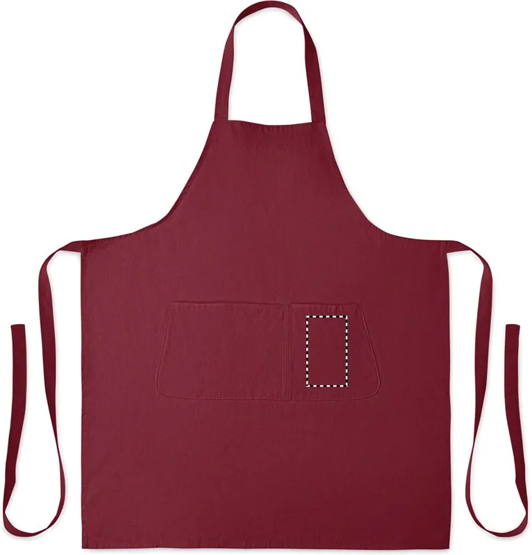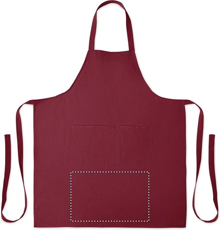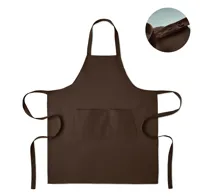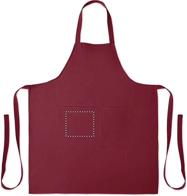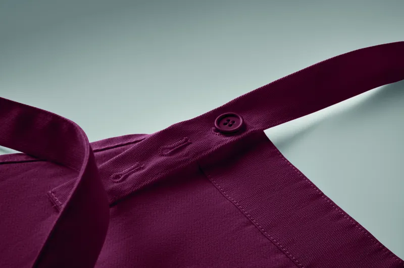 Állítható teljes kötény 1 nagy elülső, 2 rekeszre osztott zsebbel, 240 g/m² biopamutból. Gombbal állítható hosszúságú nyakpánttal.