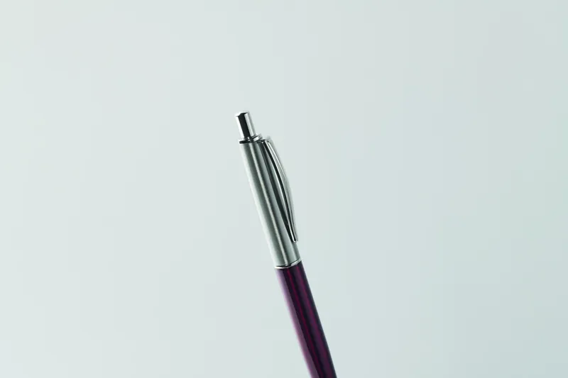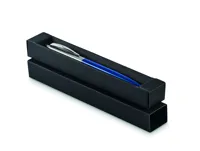 Nyomógombos golyóstoll újrahasznosított rozsdamentes acél tolltesttel. Kéken író betéttel. Ajándékdobozban.