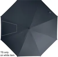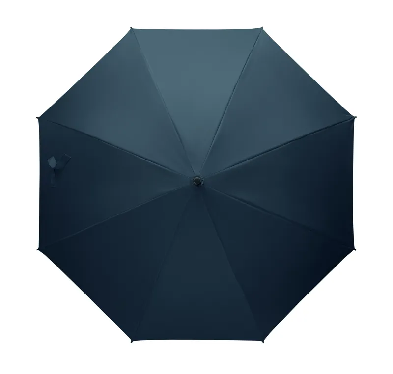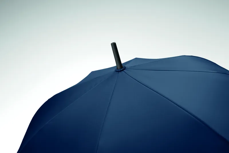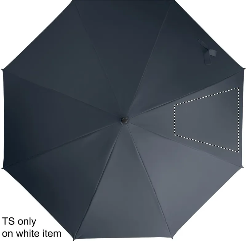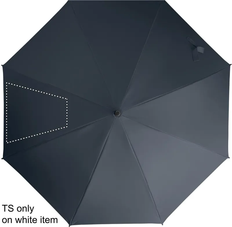 23 colos, egyenes, automatikusan nyíló esernyő fekete fém rúddal, üvegszálas bordákkal és 190T nyersselyem pongee anyagból készült panelekkel. Műanyag cikkelyzáró elemek és csúcs. Gumírozott, PP műanyag hajlított markolat. Kézi záródás.