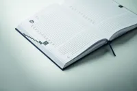 A5, napi beosztású öröknaptár, 60% fogyasztás utáni újrahasznosított poliészter és 40% PU borítóval. 416 univerzális oldal (208 lap) 70 g/m² újrahasznosított papírból. Illeszkedő színű poliészter könyvjelző szalag.