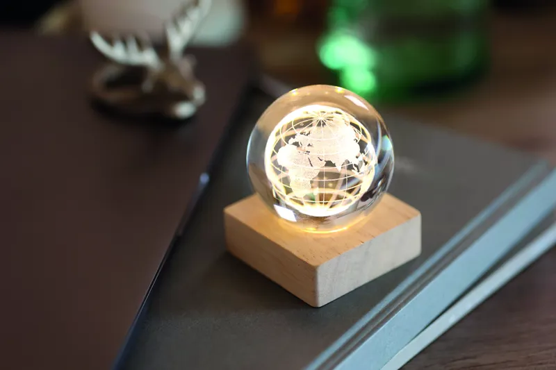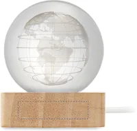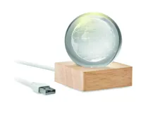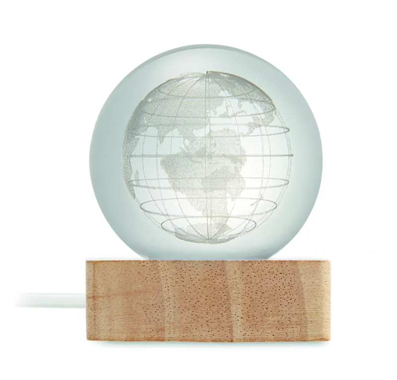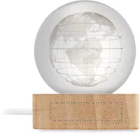 Földgömb üveggömb LED-fénnyel (100 lumen) gumifa alapon. USB töltőkábellel (90 cm). FSC 100% | W18.8 | FSC-C213206