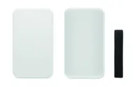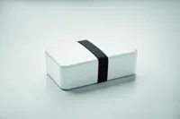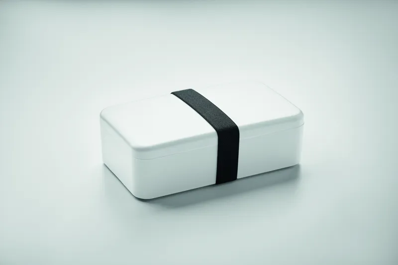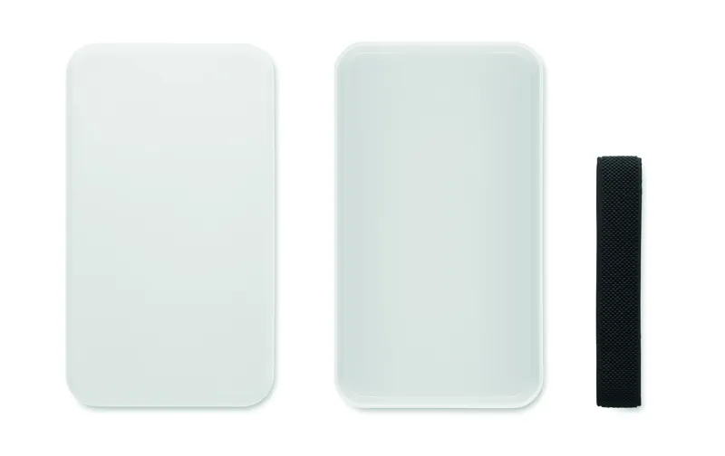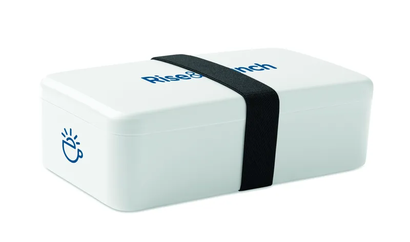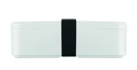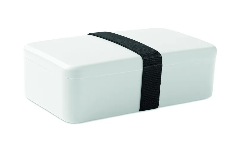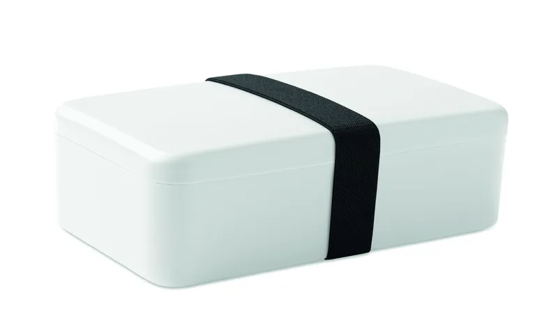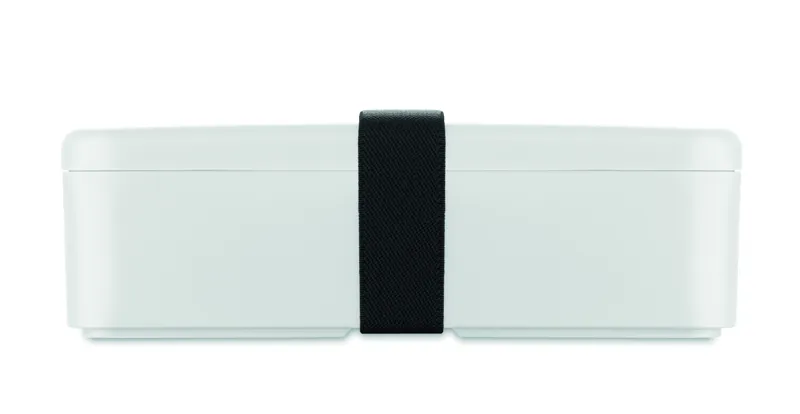 Uzsonnás- vagy ételtartó doboz PP-ből, RPET elasztikus rögzítőpánttal. Űrtartalom: 750 ml.