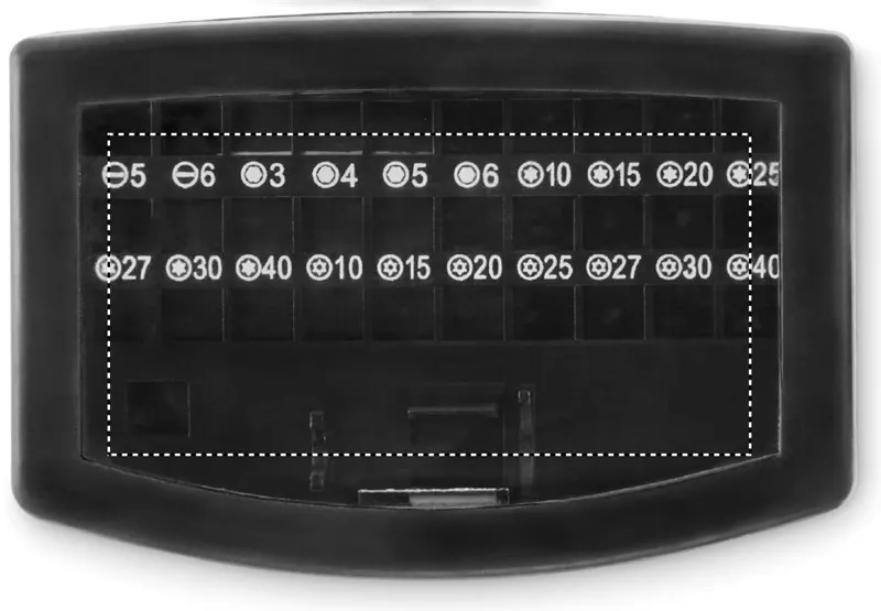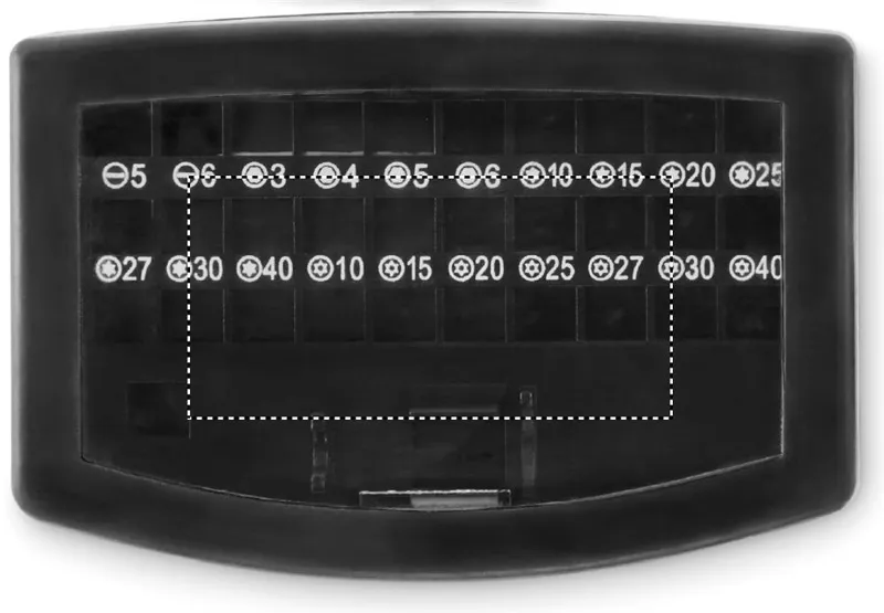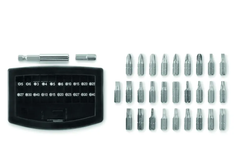 32 darabos csavarhúzó bitfej készlet adapterrel.