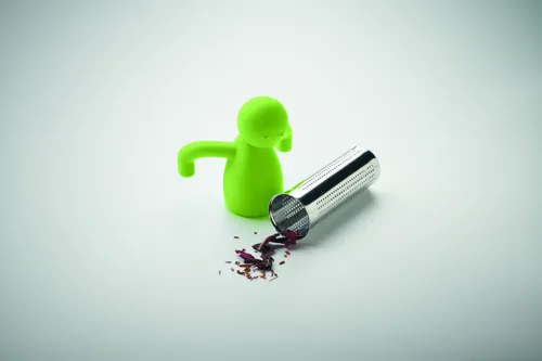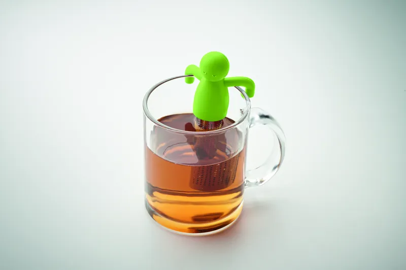Teatojás emberke szálas teához. Szilikonból készült emberke forma és rozsdamentes acél szűrő.
