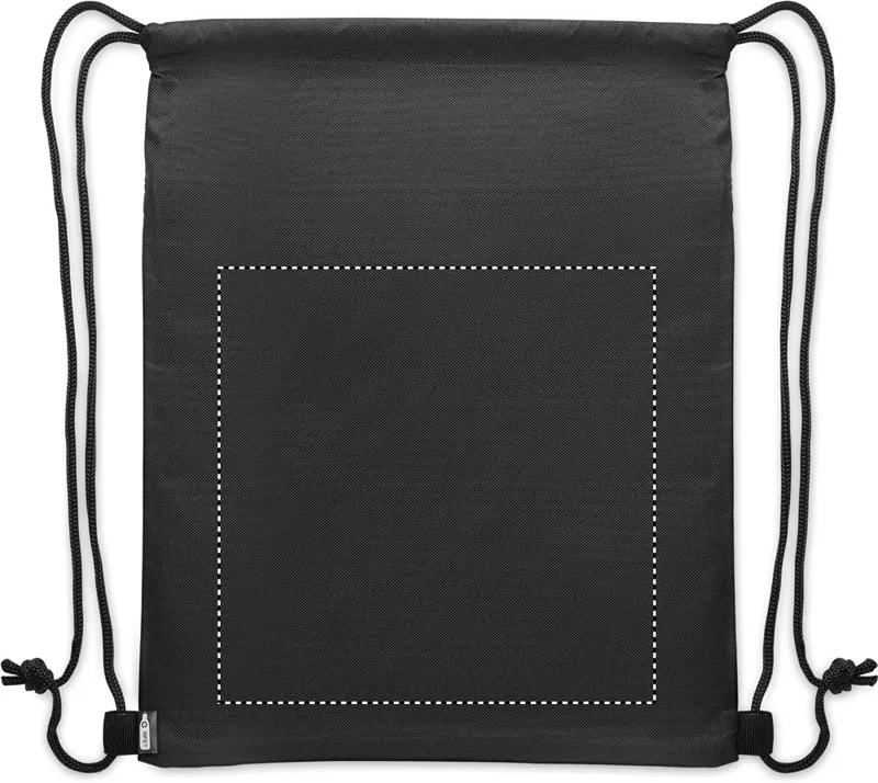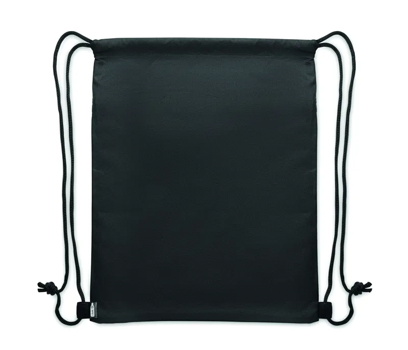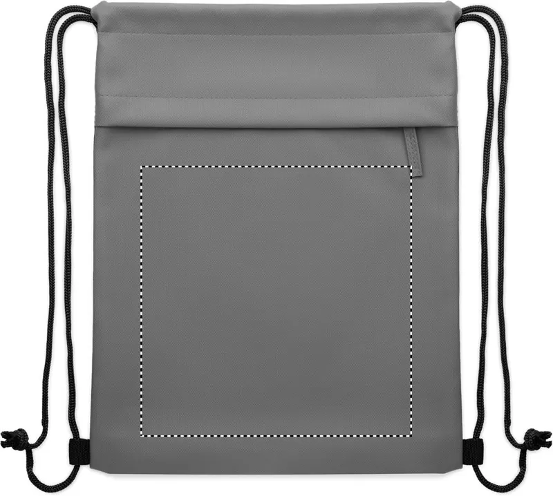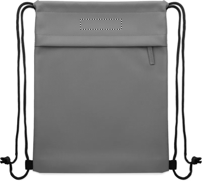 Húzózsinóros táska PU bevonatú 600D RPET poliészterből, 190T RPET poliészter béléssel. Cipzáras elülső zsebbel.