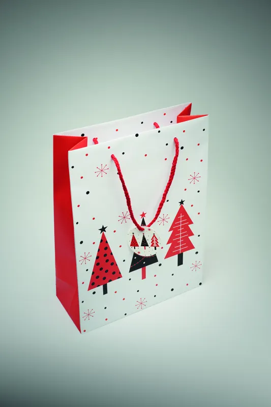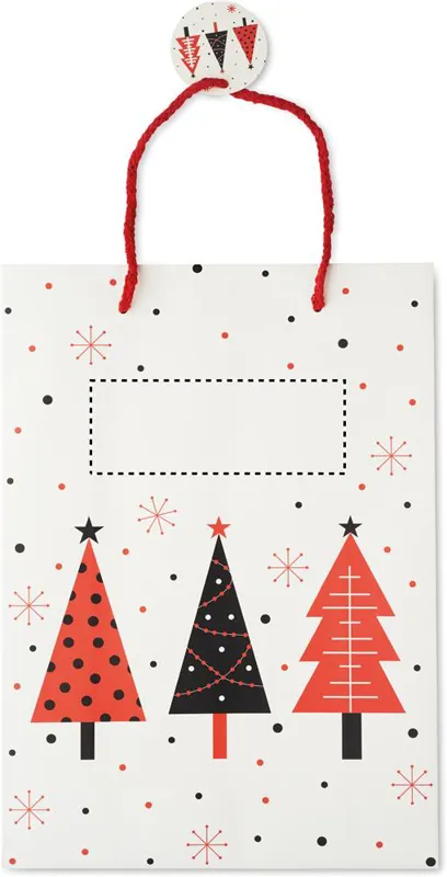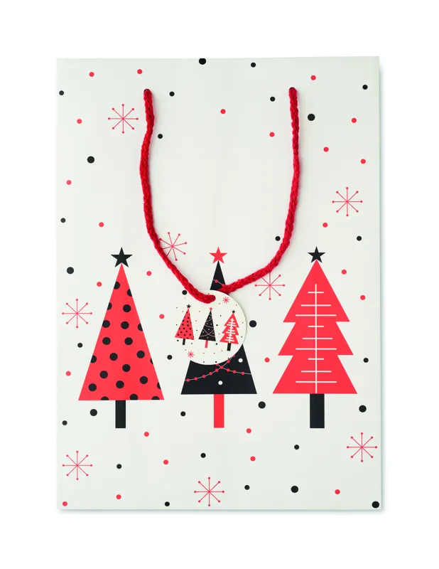 Nagyméretű, karácsonyi ajándéktasak papírból (30%-ban újrahasznosított), ajándék kísérő címkével. 150 g/m². FSC®-certified | FSC MIX, P5.3, FSC- C213206
