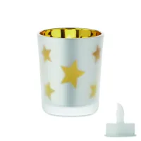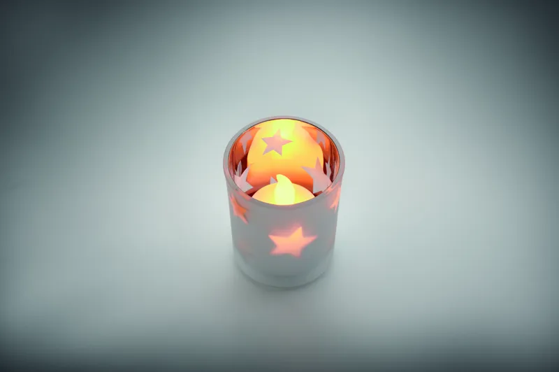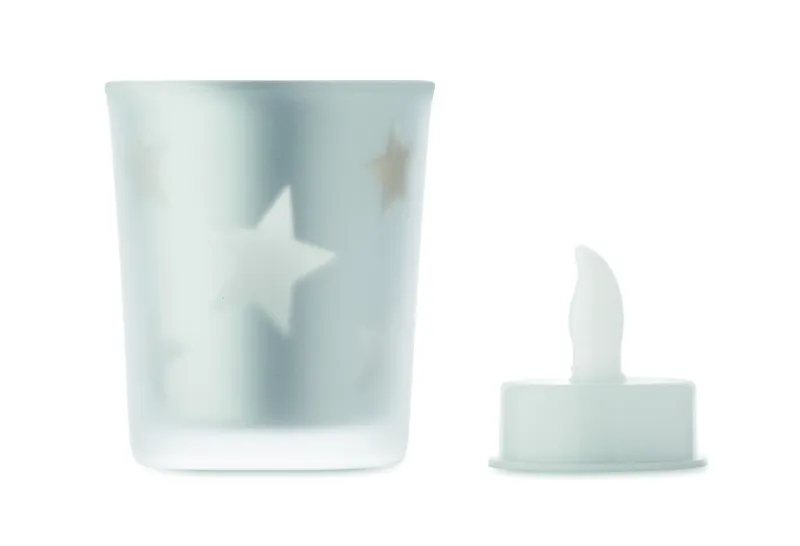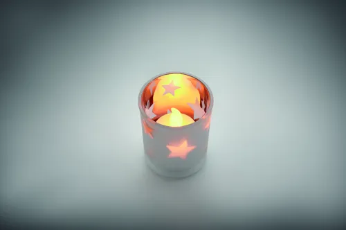 LED mécses PP-ből, üveg tartóban. A működéshez szükséges 1 db CR2032 elemmel szállítjuk.