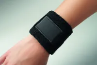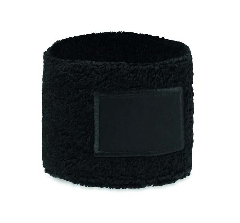 Csuklópánt poliészter-pamut kevert szálas anyagból (79% pamut, 13% elasztán, 8% poliészter), emblémázható pamut felvarróval.
