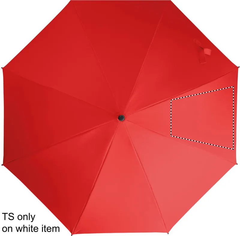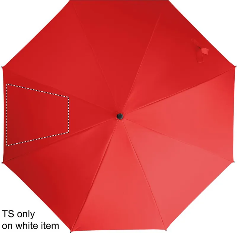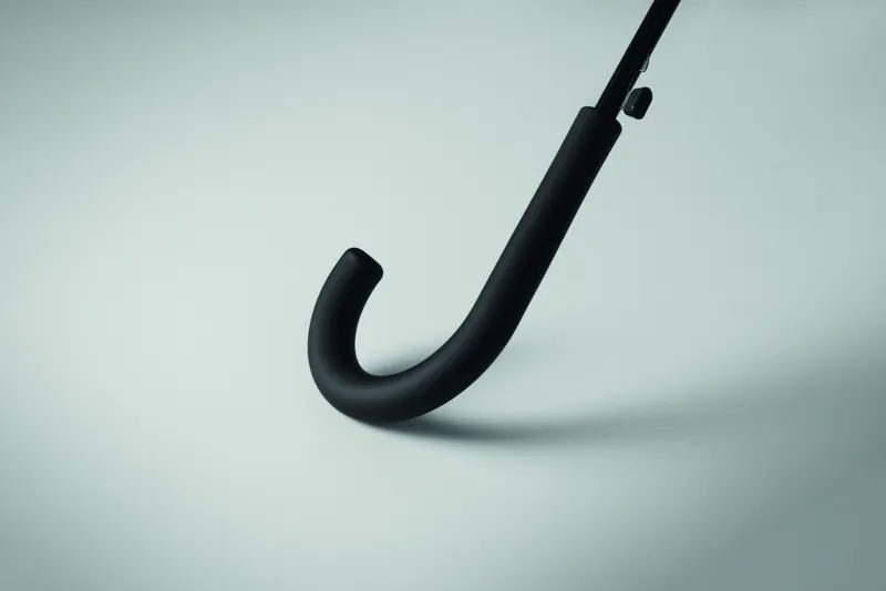 23 colos, egyenes, automatikusan nyíló, szélálló esernyő, teljes üvegszálas vázzal és 190T nyersselyem pongee anyagból készült panelekkel. Műanyag cikkelyzáró elemek és csúcs. Gumírozott, PP műanyag hajlított markolat. Kézi záródás.