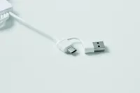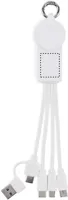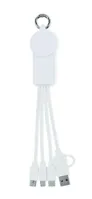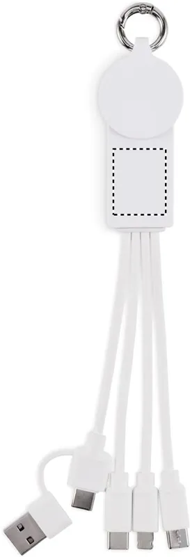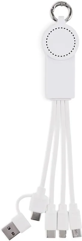 Kulcstartó töltőkábellel. Bemenet: 2 az 1-ben C-típusú és USB-A. Kimenet: okosóra töltő (Samsung® és Apple®), 2 x C-típusú és mikro-B (2 az 1-ben tűs). Újrahasznosított TPE kábel.