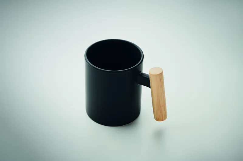 Kerámia bögre fa füllel. Űrtartalom: 320 ml. Egyesével, fehér kartondobozba csomagolva.