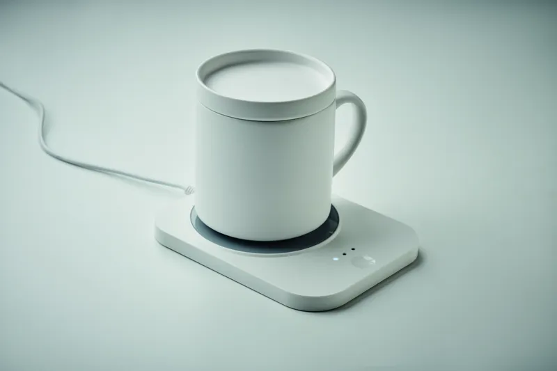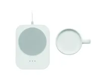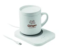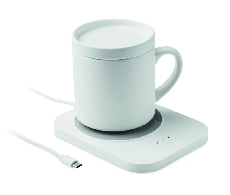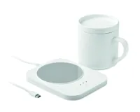2 az 1-ben, 15W vezeték nélküli töltő és bögremelegítő eszköz ABS-ből, fedeles kerámia bögrével. Űrtartalom: 250 ml. Max. 50ºC-ig tartja melegen az italokat. 3 hőmérsékleti beállítás érintővezérléssel. USB töltőkábel. Kimenet: DC 9V/1.67A (15W).