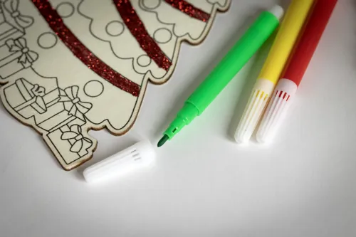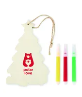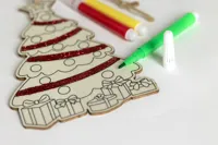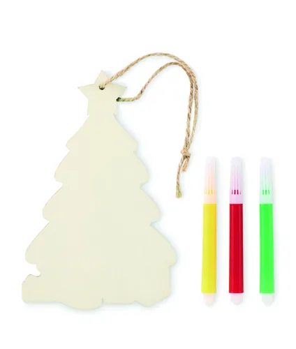 Nyárfából készült, kiszínezhető karácsonyfadísz 3 filctollal, juta zsinórral.