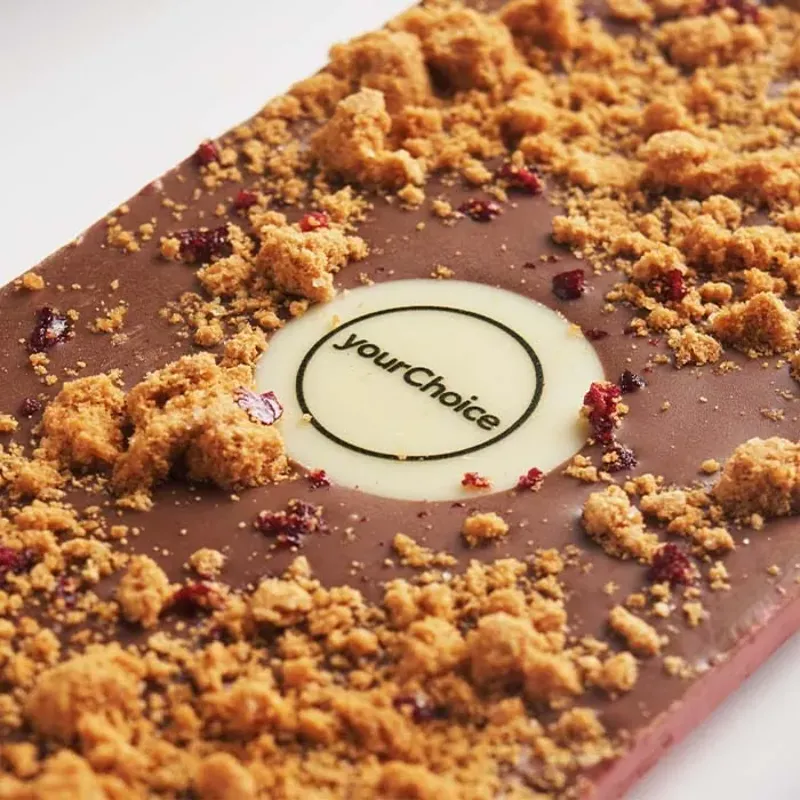 a csokoládén az Ön logójával (kb. Ø 3 cm).