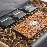 A készlet tartalmaz egy kézműves csokoládét (kb. 95 gramm), ropogós keksszel és meggyel