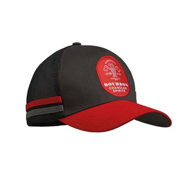 5 paneles, PES-pamut, díszcsíkos kamionos sapka.