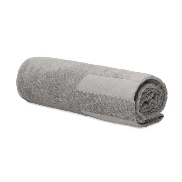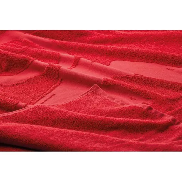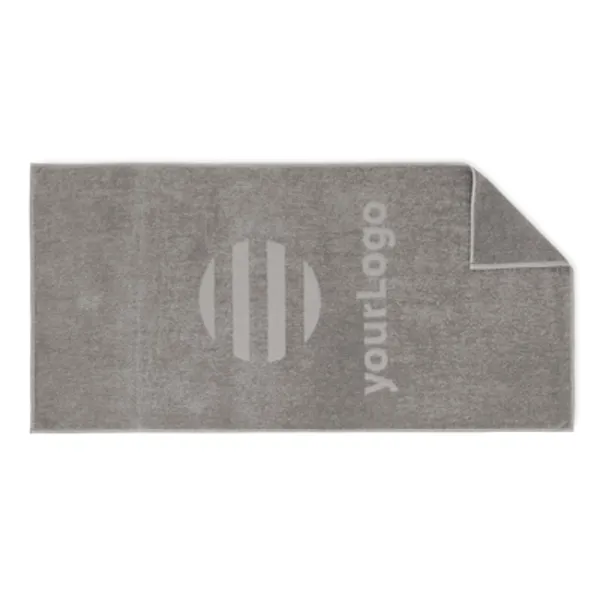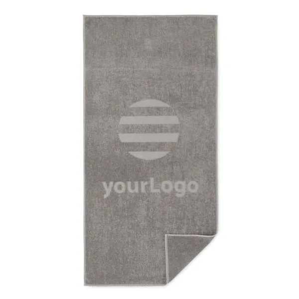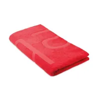 Domborszövött, 350 g/m² pamut strandtörölköző.