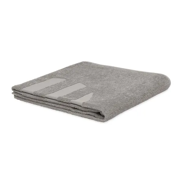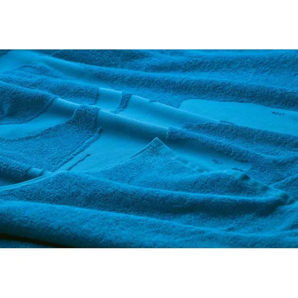 A logó mintája sík felületként jelenik meg ott, ahol a frottír hurkok hiányoznak. Ez az eljárás diszkrét és kifinomult domborszövött mintákat hoz létre. A törölköző hátoldala megtartja a szokásos frottír szerkezetet.