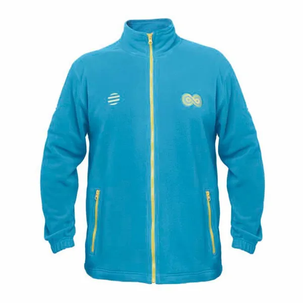 100% poliészter, bolyhosodásmentes anyag, kb. 280 g/m². Szalagerősített nyakvonal, elasztikus húzózsinór az alján, elasztikus mandzsetták. Színazonos vagy kontrasztos színű cipzárak. Kezelési útmutató címke az oldalvarrásban.