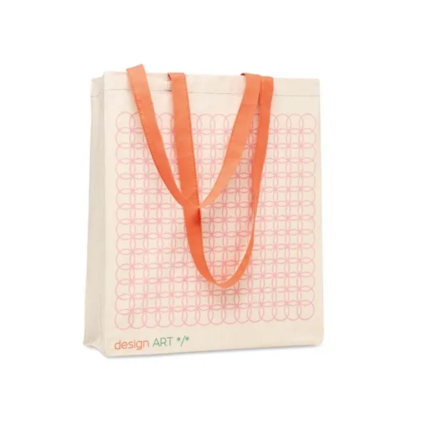 Fogyasztás előtti újrahasznosított pamut bevásárlótáska oldalsó- és talp toldással, hosszú fülekkel (38x10x42 cm).