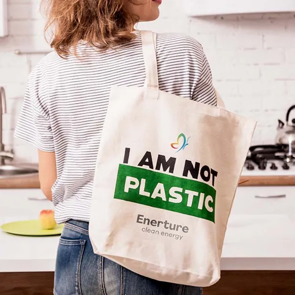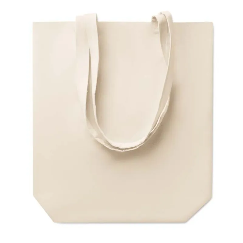 Pamutvászon bevásárlótáska talppal és hosszú fülekkel. Válasszon a különböző elérhető anyagvastagságok közül, készíttesse el a pamutszatyrokat natúr színben vagy az Ön logójának egyedi színére festve, és adja hozzá saját dizájnját.