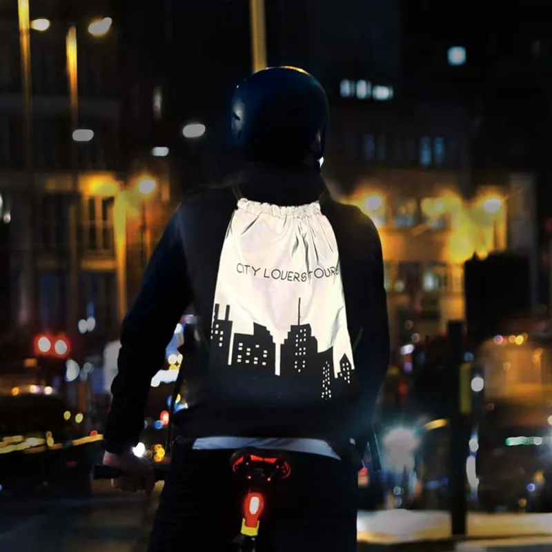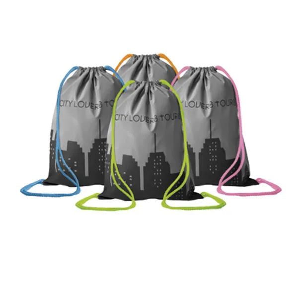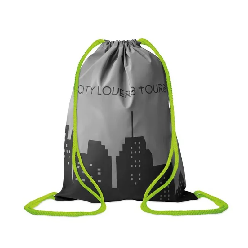 Fényvisszaverő húzózsinóros táska neon színű zsinórokkal. Nem biztonsági használatra.