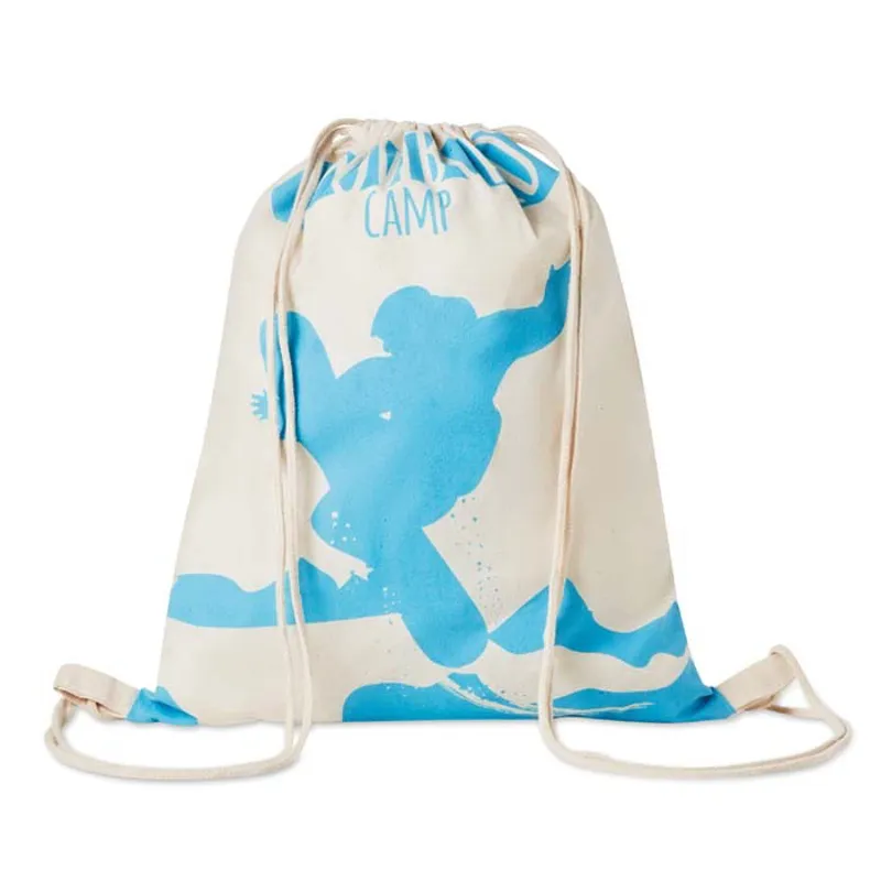 Testreszabható pamut húzózsinóros táska. Válasszon a különböző elérhető anyagvastagságok közül, készíttesse el a pamutszatyrokat natúr színben vagy az Ön logójának egyedi színére festve, és adja hozzá saját dizájnját.