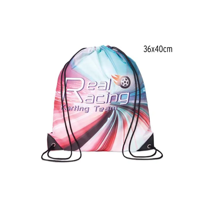 Húzózsinóros táska 210D poliészterből, PU megerősített sarkokkal. A húzózsinóros záródás könnyű hozzáférést biztosít a táska tartalmához, ugyanakkor használat közben biztonságosan a helyén tartja azt.