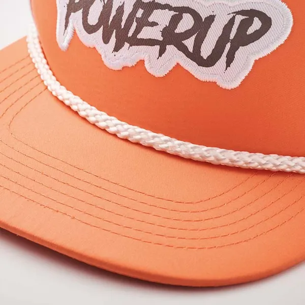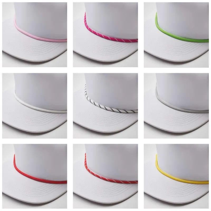 Könnyű, 130 g/m² nyersselyem (pongee) anyagból készült, lapos napellenzős sapka, perforált hálós hátoldallal és opcionális, kontraszt színű dekoratív zsinórral.
