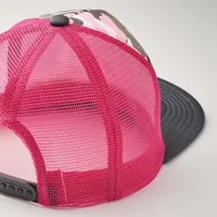 5 paneles, lapos napellenzős sapka, magas, poliészter hab elülső résszel és légáteresztő hálós hátoldallal.
