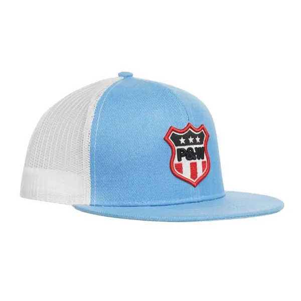 Magas profilú, lapos ellenzővel és hozzáillő poliészter-pamut izzadságfelszívó pánttal, valamint állítható pánttal a testreszabott és kényelmes illeszkedés érdekében.