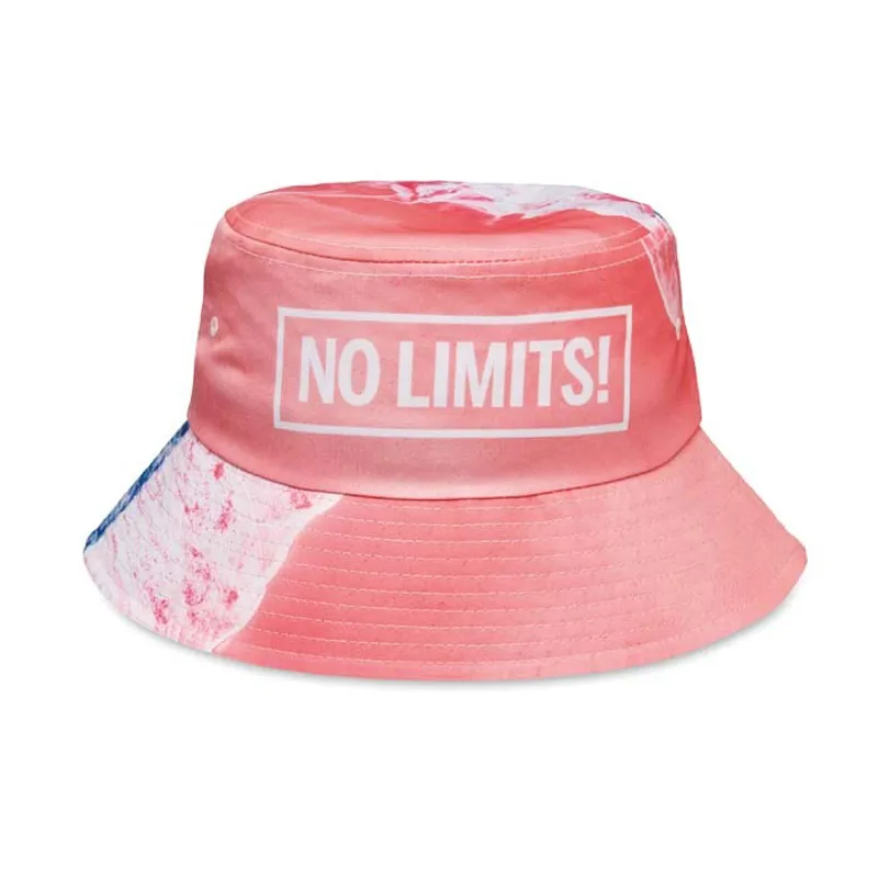 4 szín kolor horgász kalap 200 g/m² vastag fehér poliészterből, az Ön dizájnjával nyomtatva a külső oldal teljes felületén. A karima belső oldala és az izzadságfelszívó pánt fekete poliészterből készül.